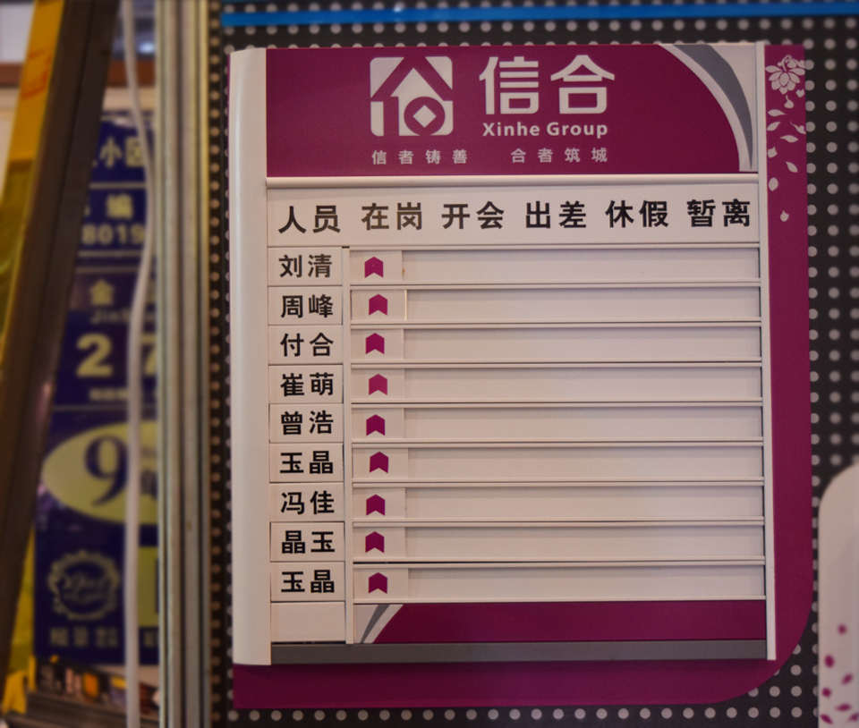 信合公司在崗情況去向牌