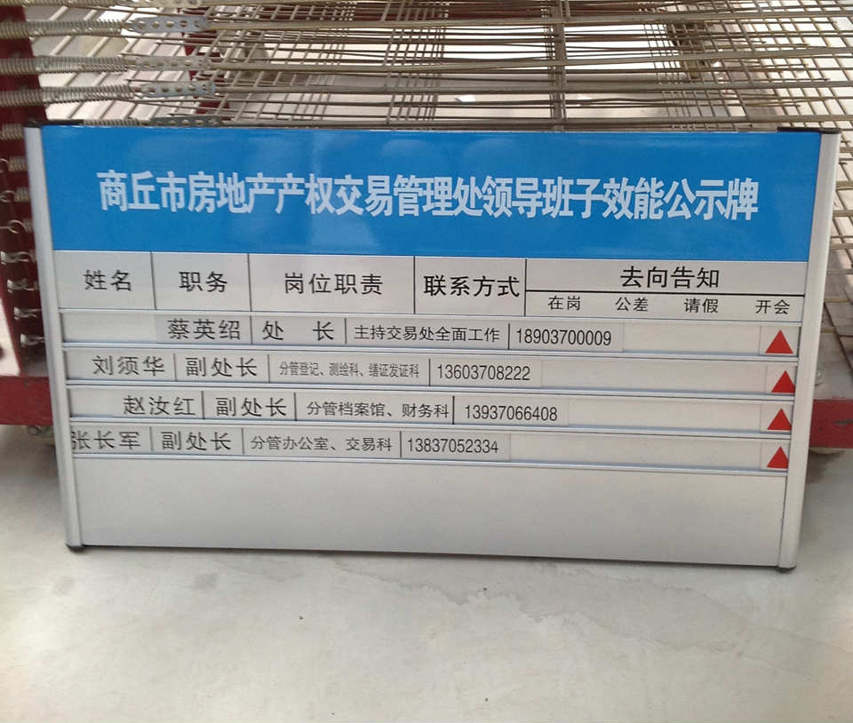 辦公室人員去向牌