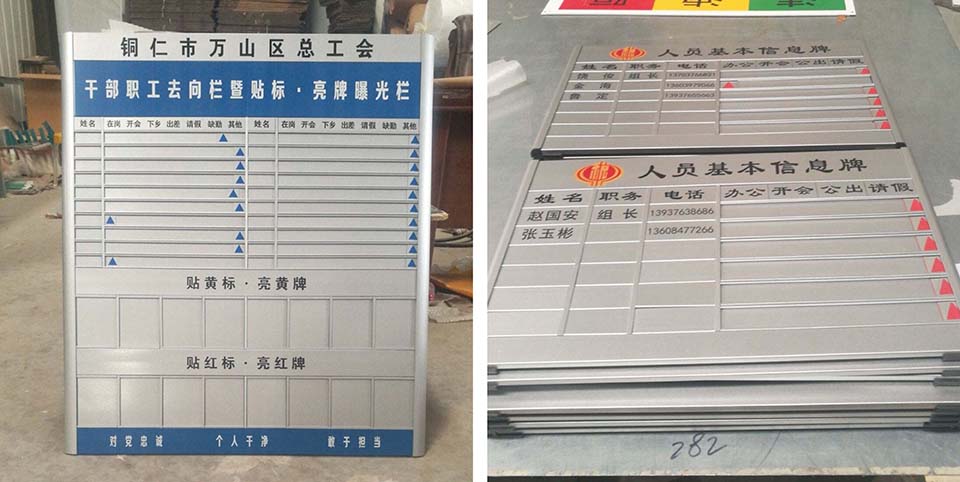 PVC、公告欄、人員去向牌