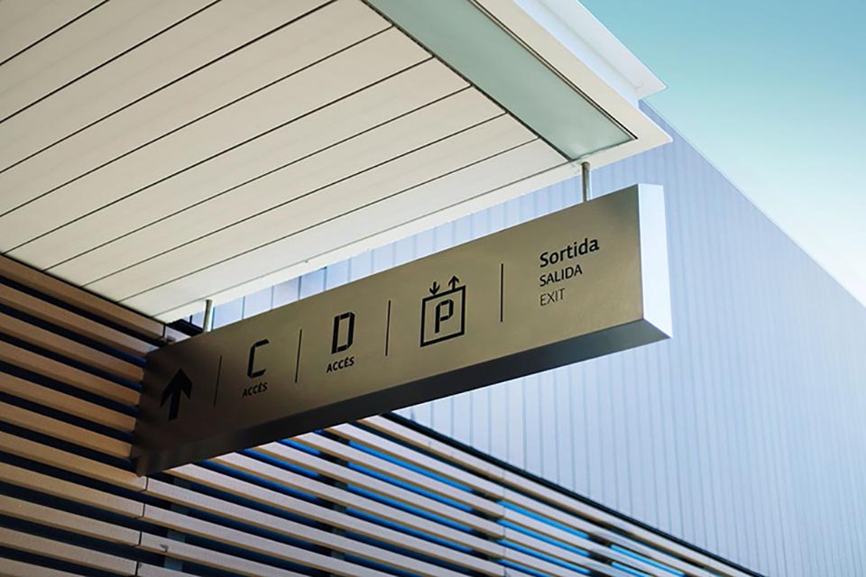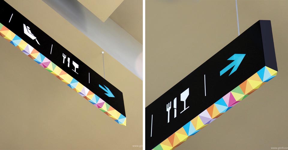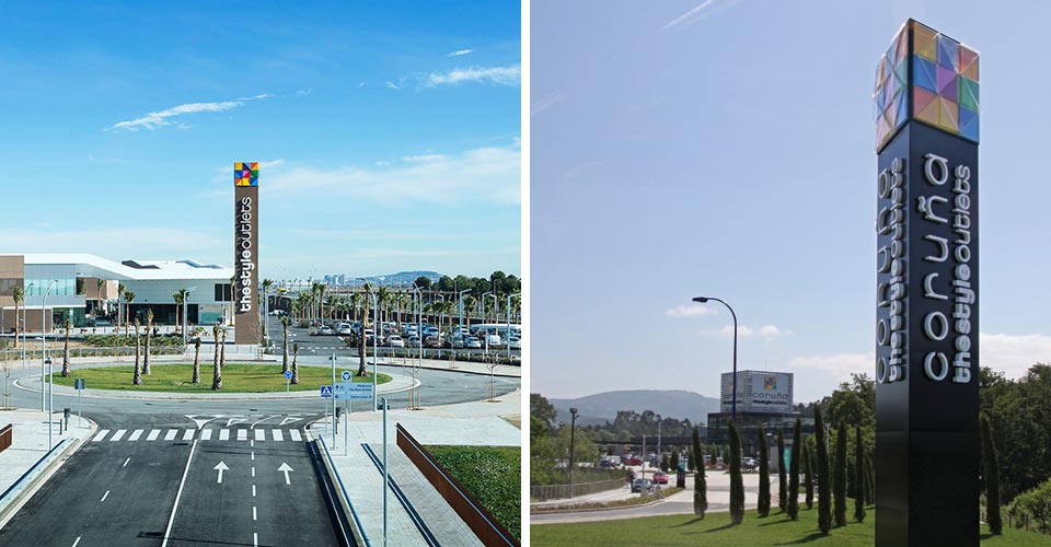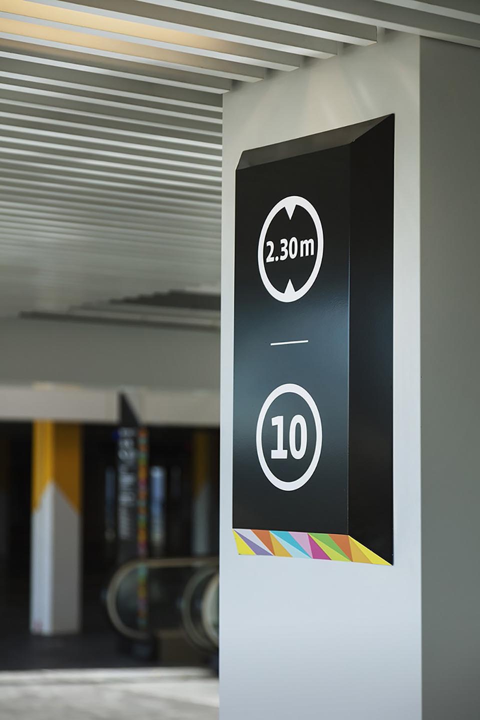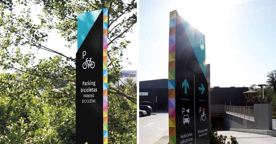 ViladecansStyle Outlets購物中心是歐洲知名門店品牌。集購物、娛樂和休閑的結合體,以提供購物者度過美好的一天所需要的一切。該項目的目的在于將標識系統和圖形自然地融入到建筑空間中,為特定的指導需求提供解決方案。Mayúscula設計工作室基于現有視覺標識,將帶有不同中心的色彩的三角形視為主要元素,并將其應用于所有的標牌系統設計中,使空間本身被作為展現品牌身份的一部分。