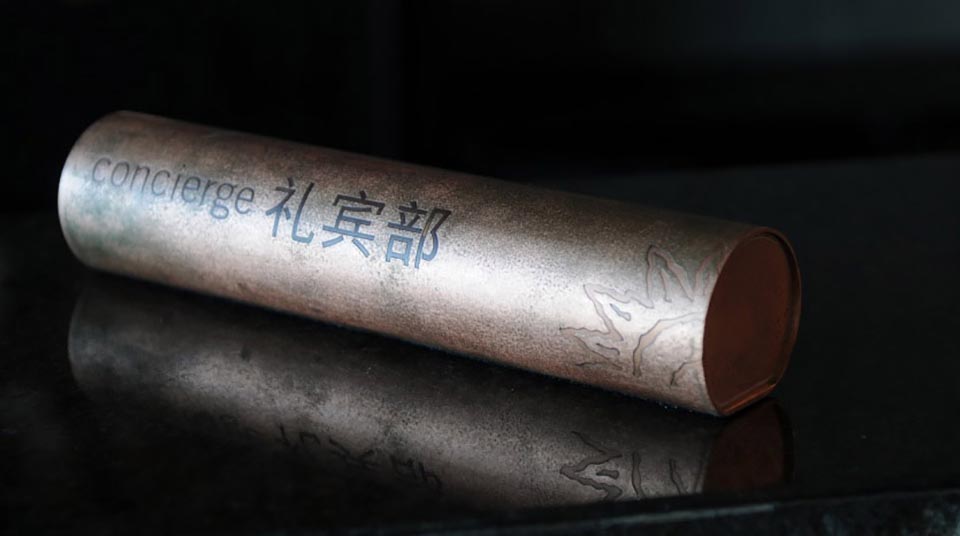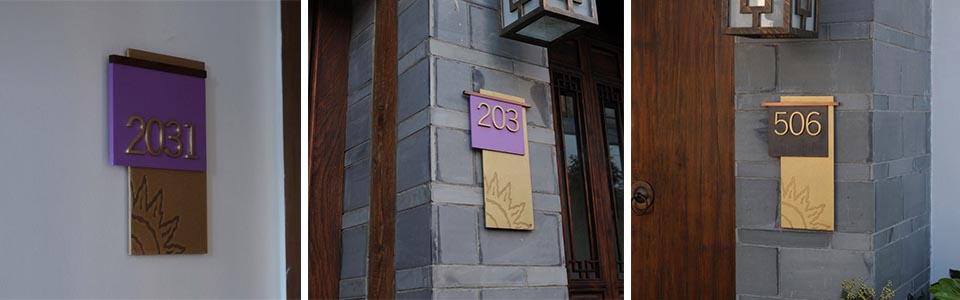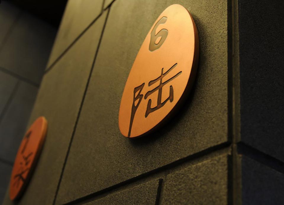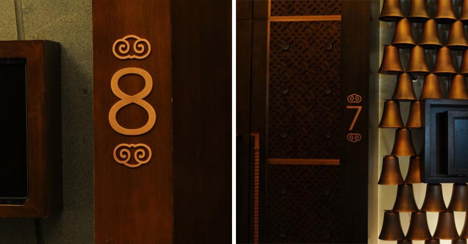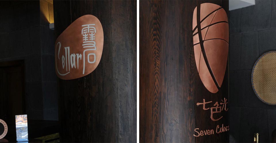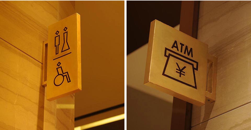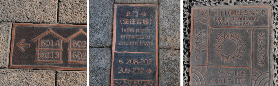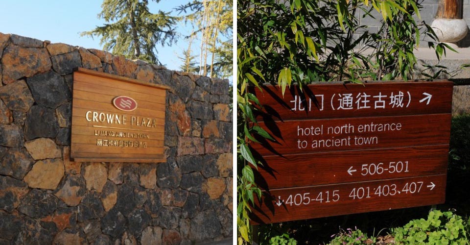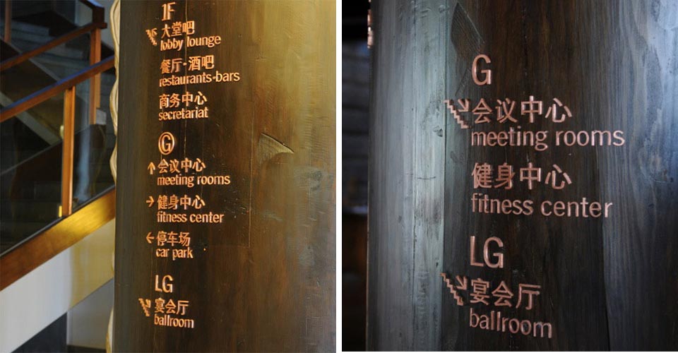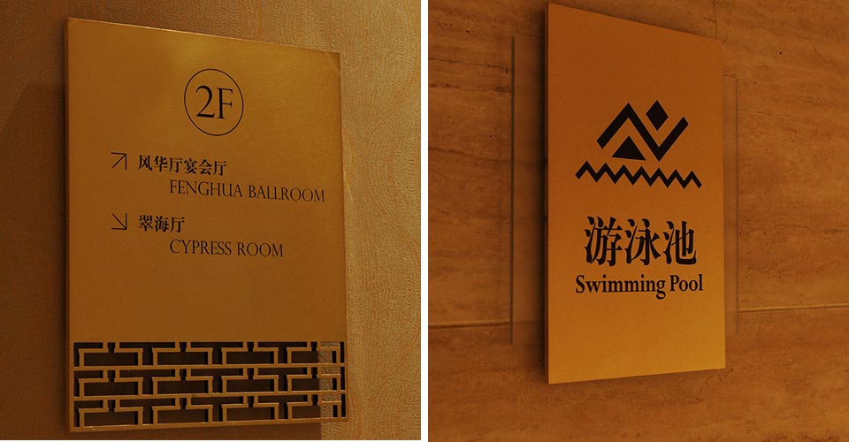 案例一,麗江皇冠假日酒店導視設計,吸取麗江東巴文字、太陽圖騰等元素,體現5星級度假酒店古樸、低調奢華的氛圍。此作品獲2013年“華鼎獎”一等獎。
