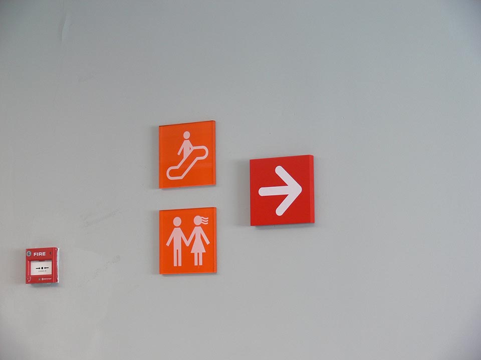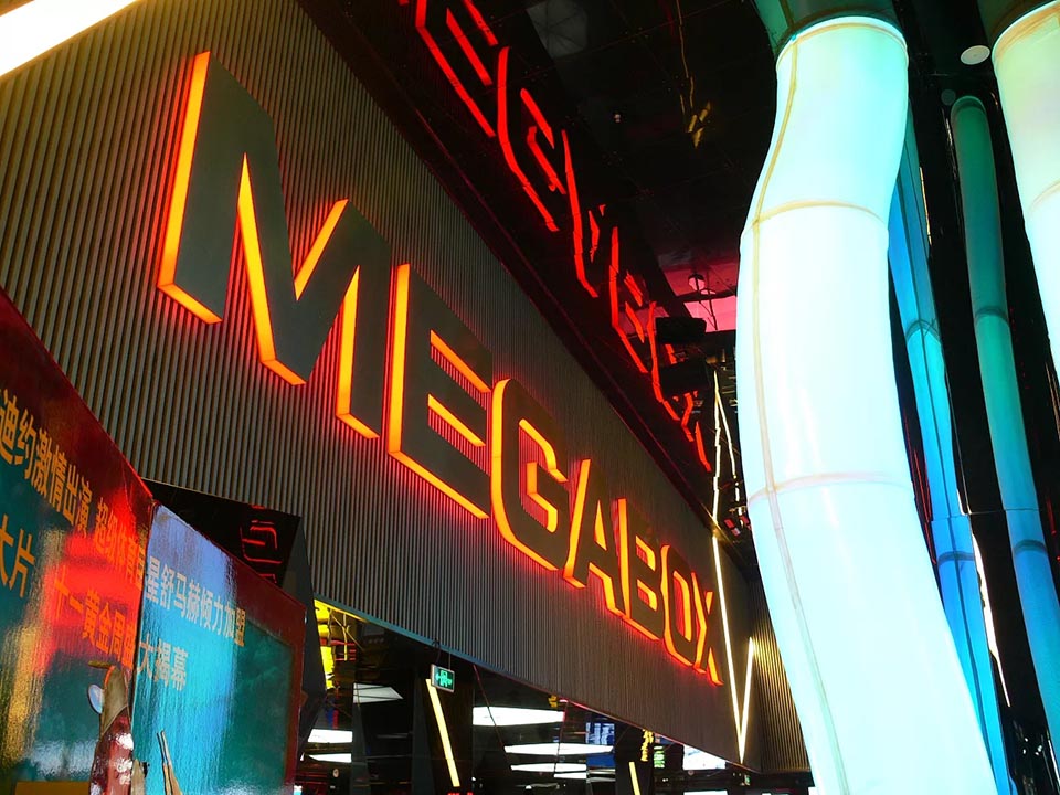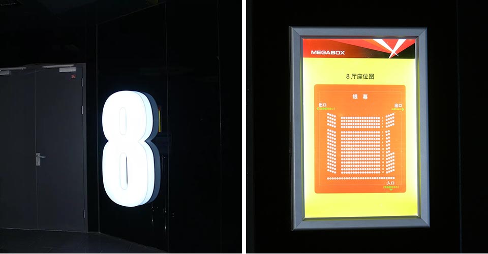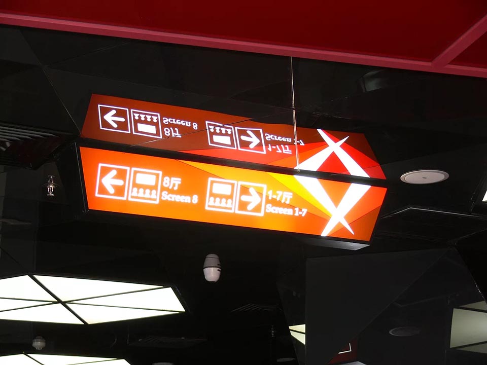案例五,美嘉歡樂影城三里屯village點導視設計,與LOGO色彩、建筑風格搭配,彰顯年輕前衛的力量。